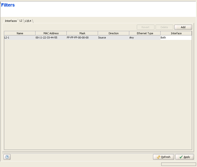 L2 Filtering Rules cannot be edited. To modify an existing Rule, delete it and then define it as a new Rule using the Add option. |