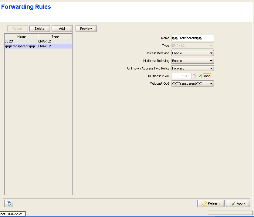 Click on the Preview button to display a preview of the new/modified Forwarding Rule, including complete details of the selected Multicast QoS Profile.