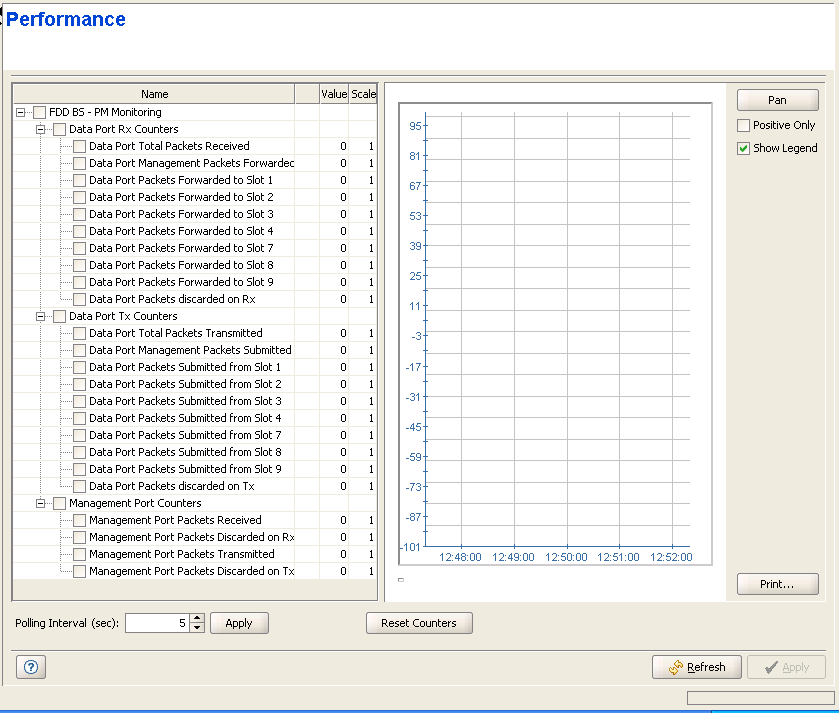 The Performance page enables on-line view of selected counters.