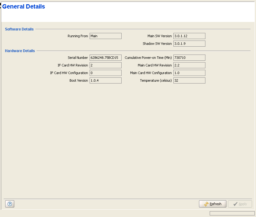 The General Details page provides general details on the hardware and software of the Micro Base Station.
