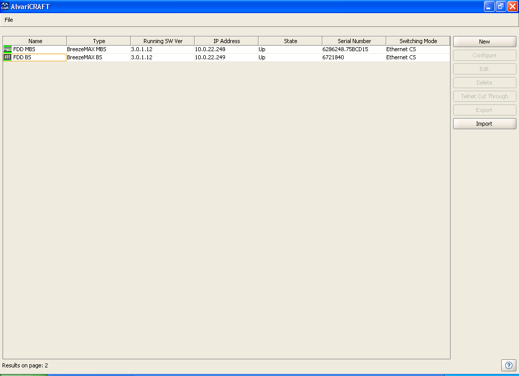 Double-click on the AlvariCRAFT icon or open it from the windows Start menu (Programs>AlvariCRAFT). The Main window opens, enabling view the current list of the Base Station(s) that can be managed by the AlvariCRAFT utility, add new Base Stations to the list, delete Base Stations from the list and edit the relevant properties of the Base Stations in the list. You can open the Device Manager or establish a Telnet cut-through to a selected device.