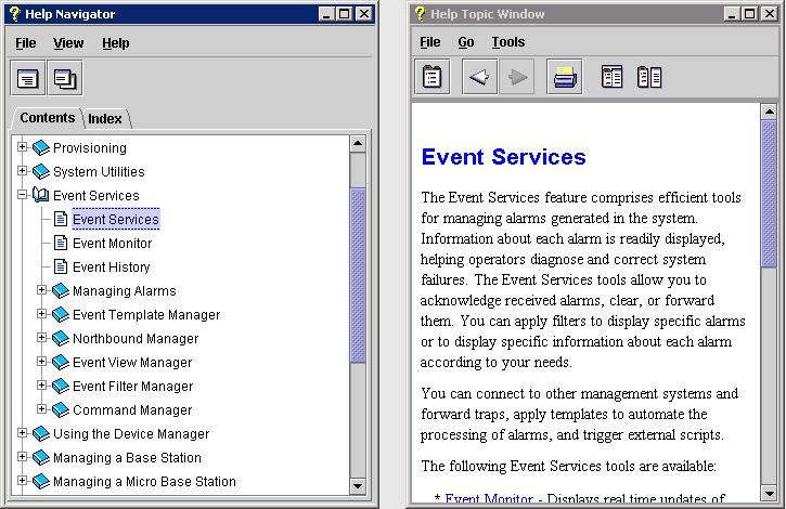 Help Navigator Window (Left) and Help Topic Window (Right)*