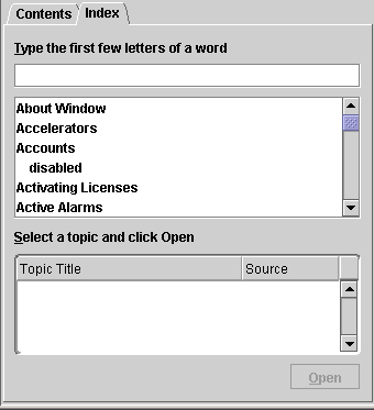 3 Select an item from the list and click Open to display the selected topic in the Help Topic window. You can also double-click on the list item to display its content.