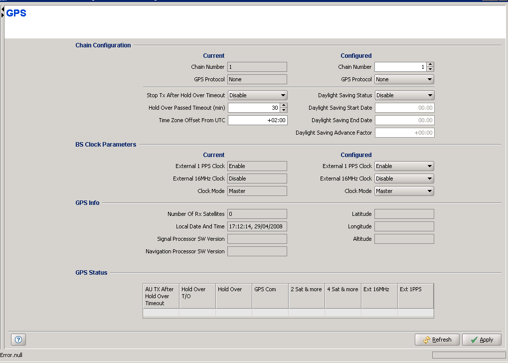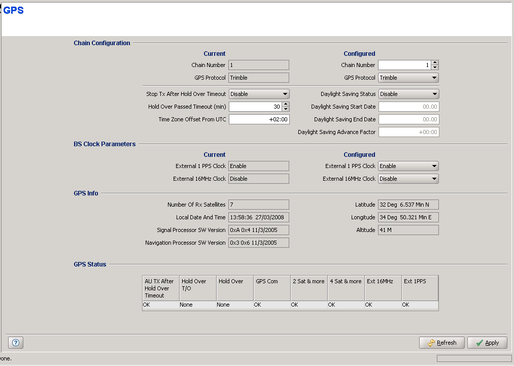 The GPS page enables viewing and configuring the parameters that affect inter-cell and intra-cell synchronization.