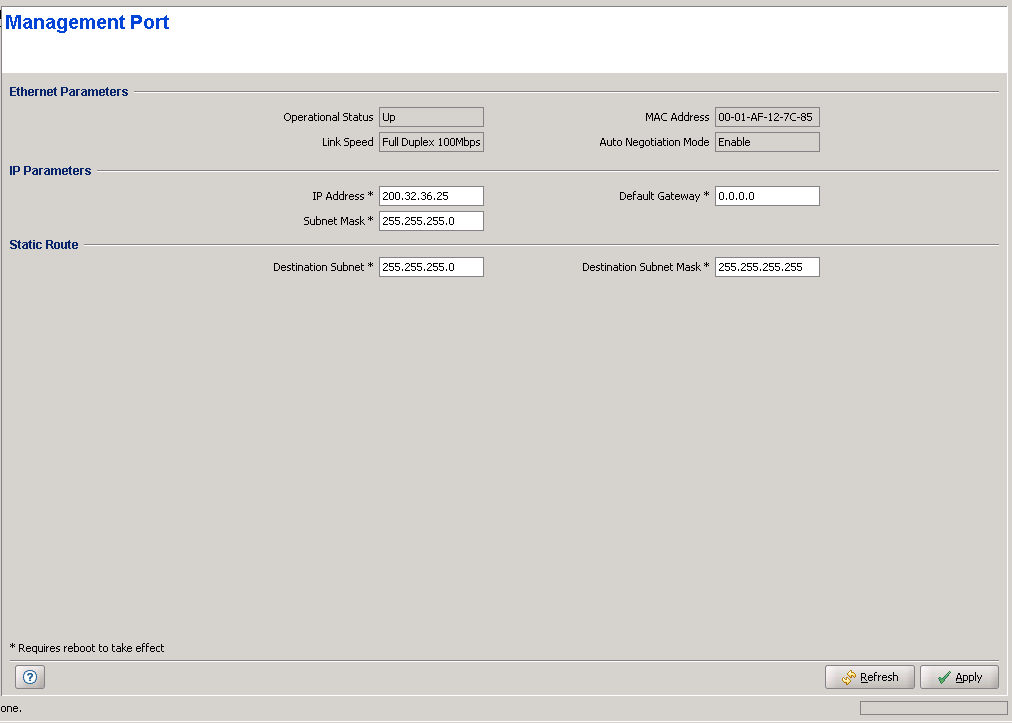 The Management Port page includes the following: