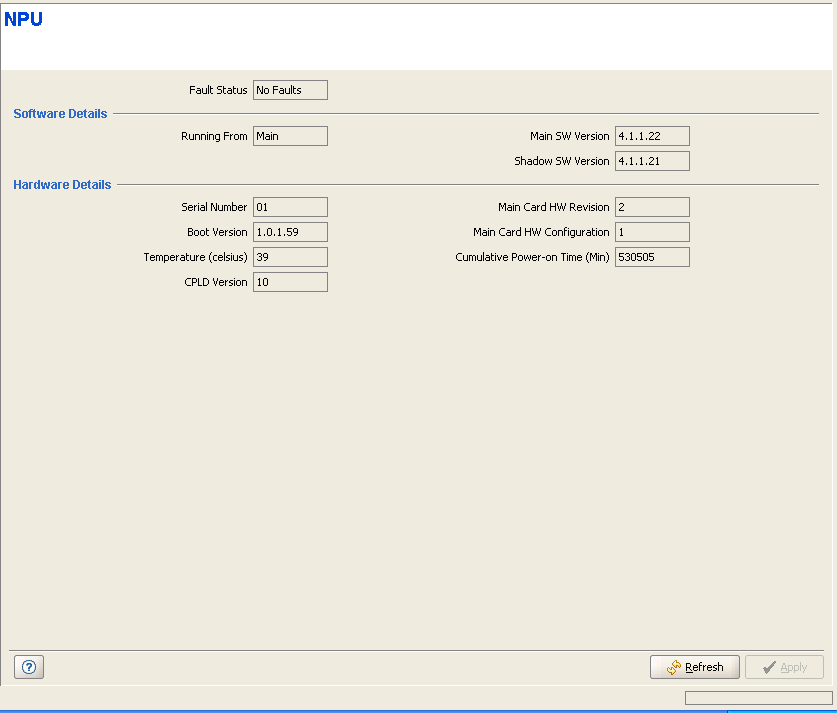 The NPU View page provides general details on the hardware and software of the NPU.