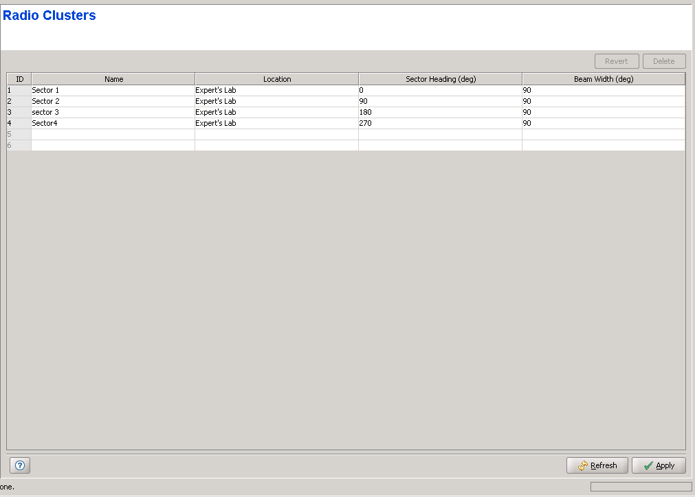 Radio Cluster is a logical entity used to describe and support management of the Base Station's elements associated with specific geographical sectors. A Radio Cluster represents one or several ODUs that serve (through their directional antennas) the same geographical sector.