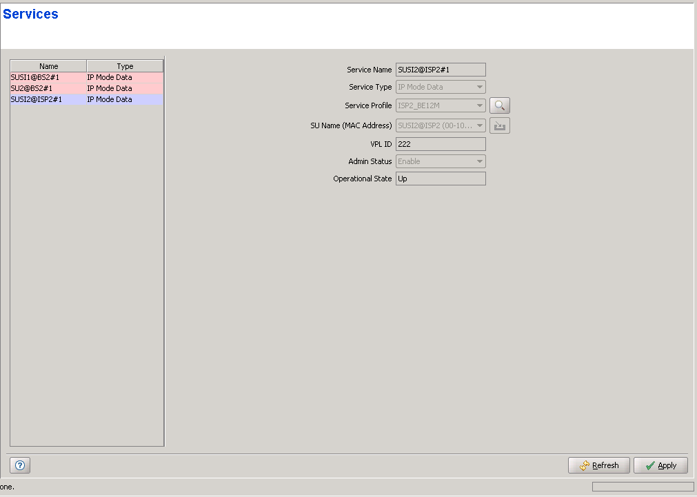The Service Type: In Ethernet CS Switching Mode, the available types are L2, PPPoE or VoIP. In Micro Base Station, Managed VoIP Service Type is also available. In IP CS Switching Mode, the available types are IP Mode Data, IP Mode VoIP and IP Mode Managed VoIP. The Service Type of an existing Service cannot be modified. For Temporary Services, the Service Type is not configurable and it is in accordance with the Service Type in the Service Profile associated to the Service. |