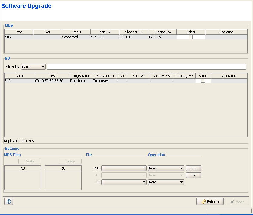 The system will automatically identify the files and use the correct file for each device type. To ensure a smooth upgrade process while minimizing the risk of loosing connectivity to the device, the order of upgrading devices is: first the SUs, then the Micro Base Station.