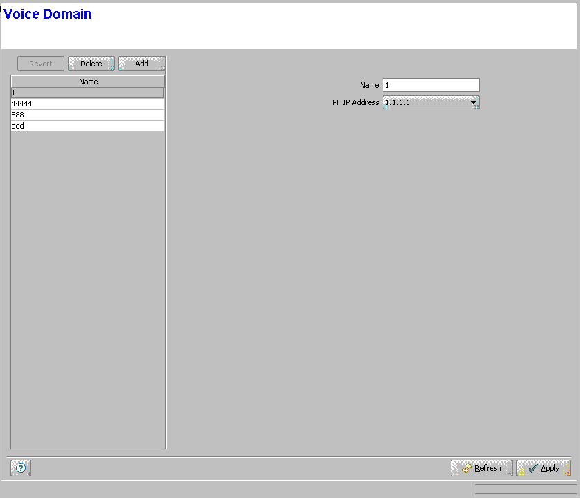 Select one or several Voice Domain entries, click on the Delete button and then click Apply to remove the selected Voice Domain(s) from the device. If you want to cancel the requested delete operation before clicking Apply, click on the Revert button.