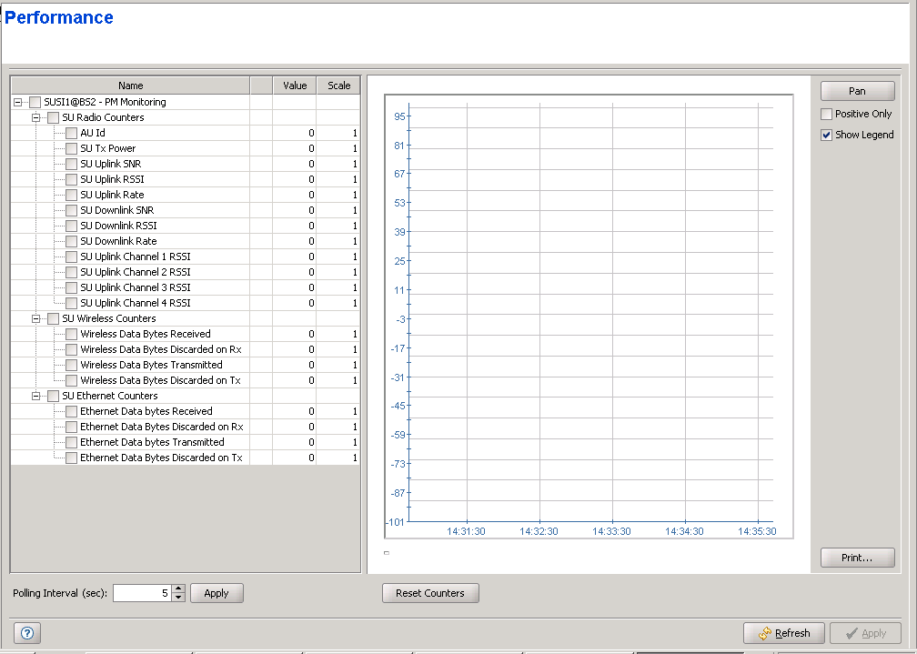 The Performance page enables on-line view of selected counters.