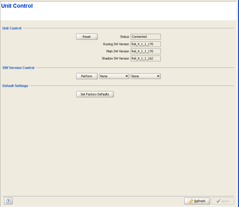 The Unit Control page enables managing the SW versions of the SU and resetting it to its default configuration.